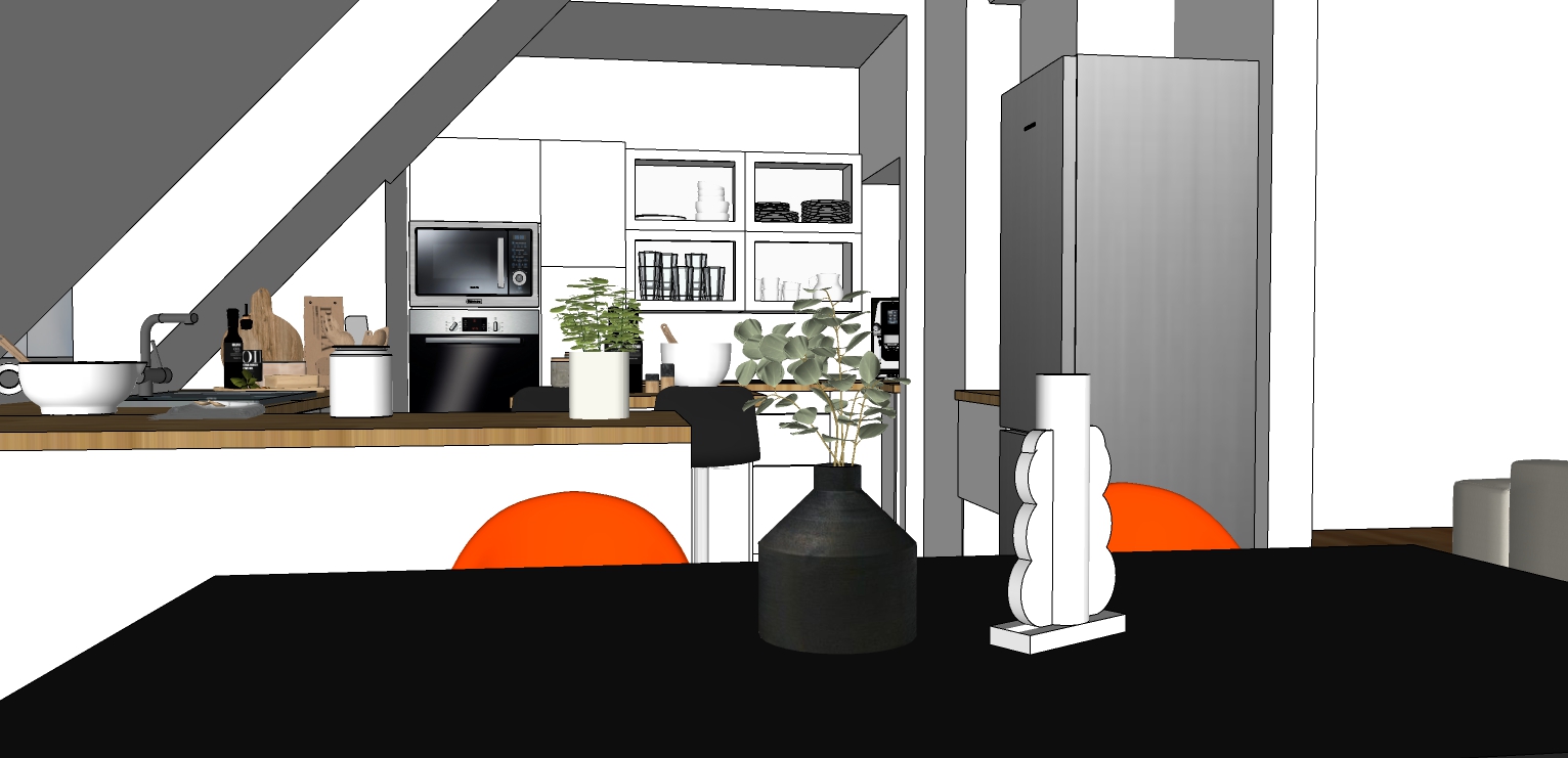 Ici la cuisine qui a subit une transformation complète, initialement cloisonnée et peu optimisée, elle a été ouverte sur la salle à manger et le salon afin de créer une pièce de vie plus fluide, plus moderne et plus agréable à vivre au quotidien.